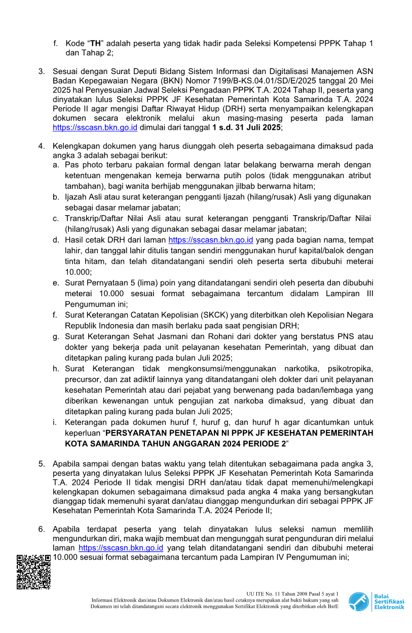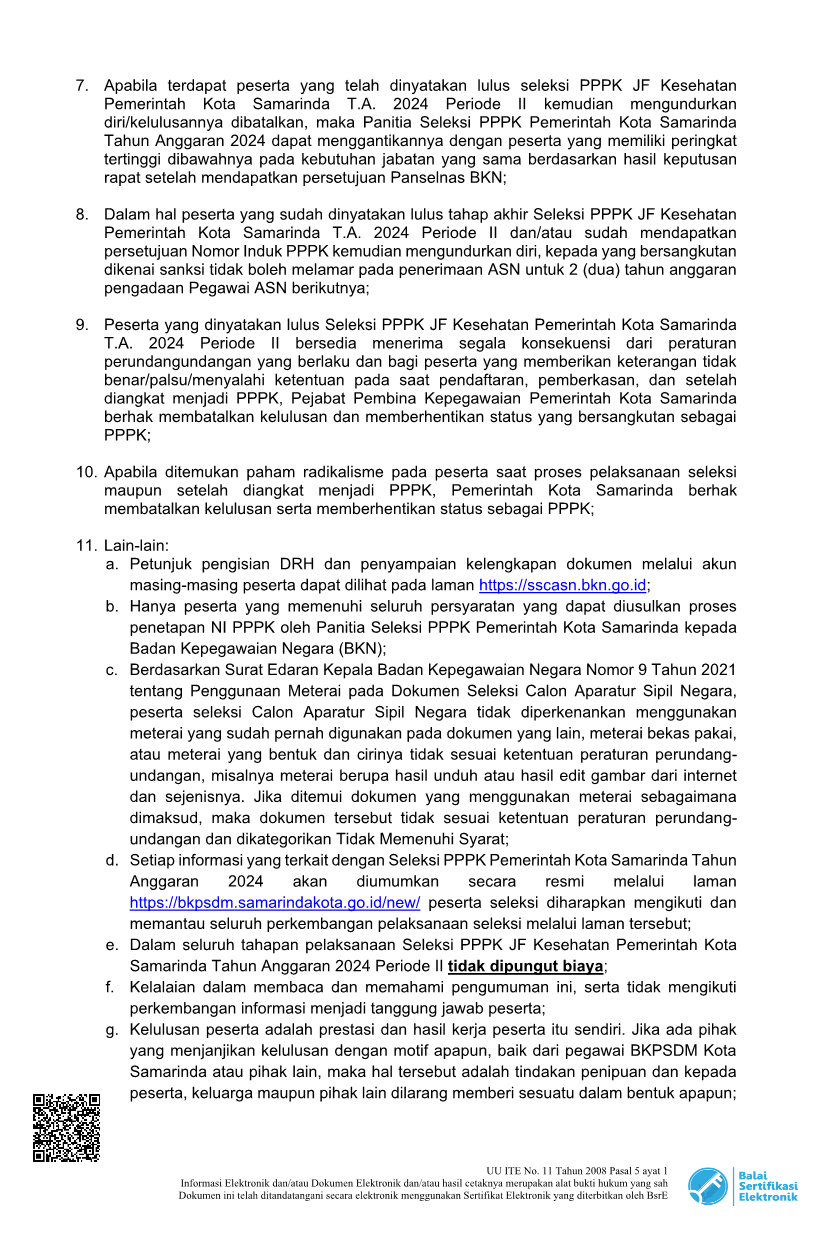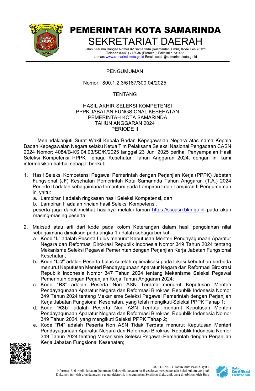 PENGUMUMAN HASIL AKHIR SELEKSI KOMPETENSI PPPK JAFUNG KESEHATAN PEMKOT SAMARINDA TA 2024 PERIODE II